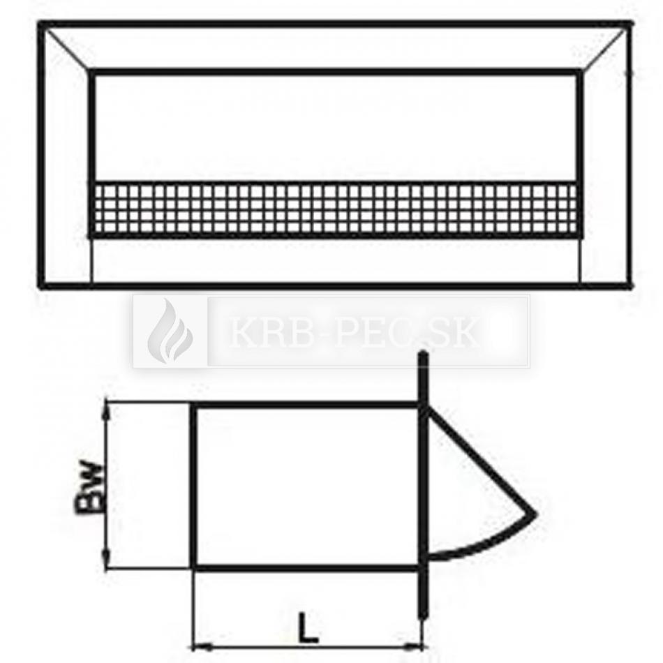 • Kanál - ukončenie na fasádu 150x50, pozink, vonkajšia časť nerez