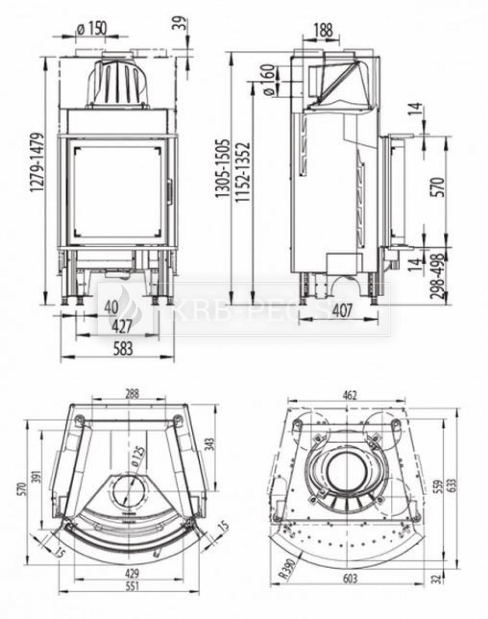 • KV 55x57 K - oceľ čierna, oblé presklenie, CPV