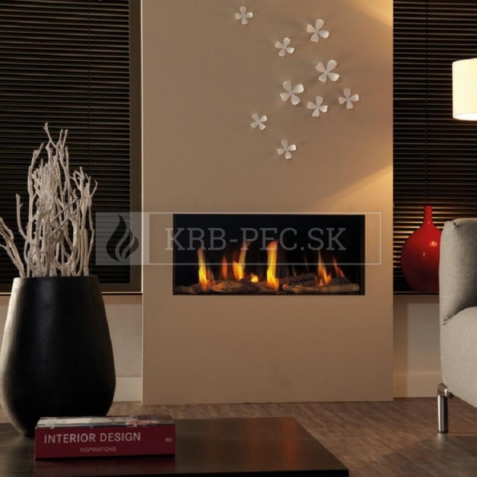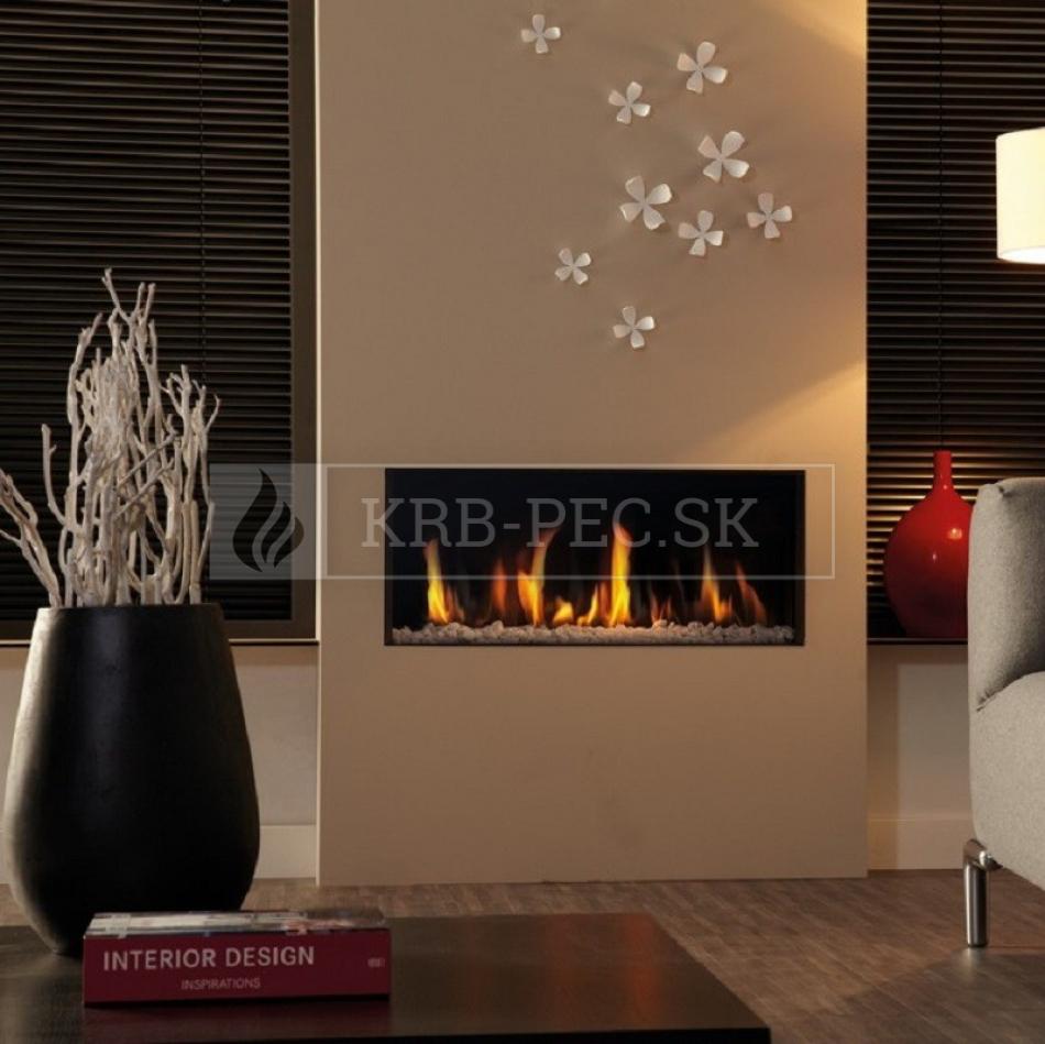 Horizontálny krb v prevedení do minimalistických moderných interiérov. Bezrámový vzhľad a jednoduché línie pôsobia elegantne a čisto