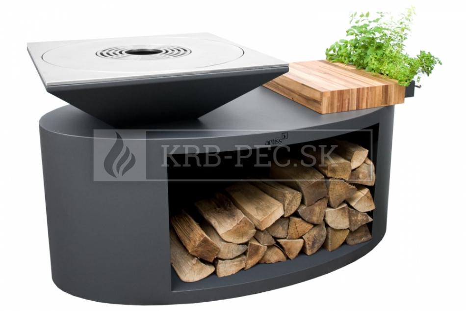 Záhradný gril Artiss G3 slúžiaci aj ako zdroj tepla alebo prírodné osvetlenie záhrady grafit krb-pec