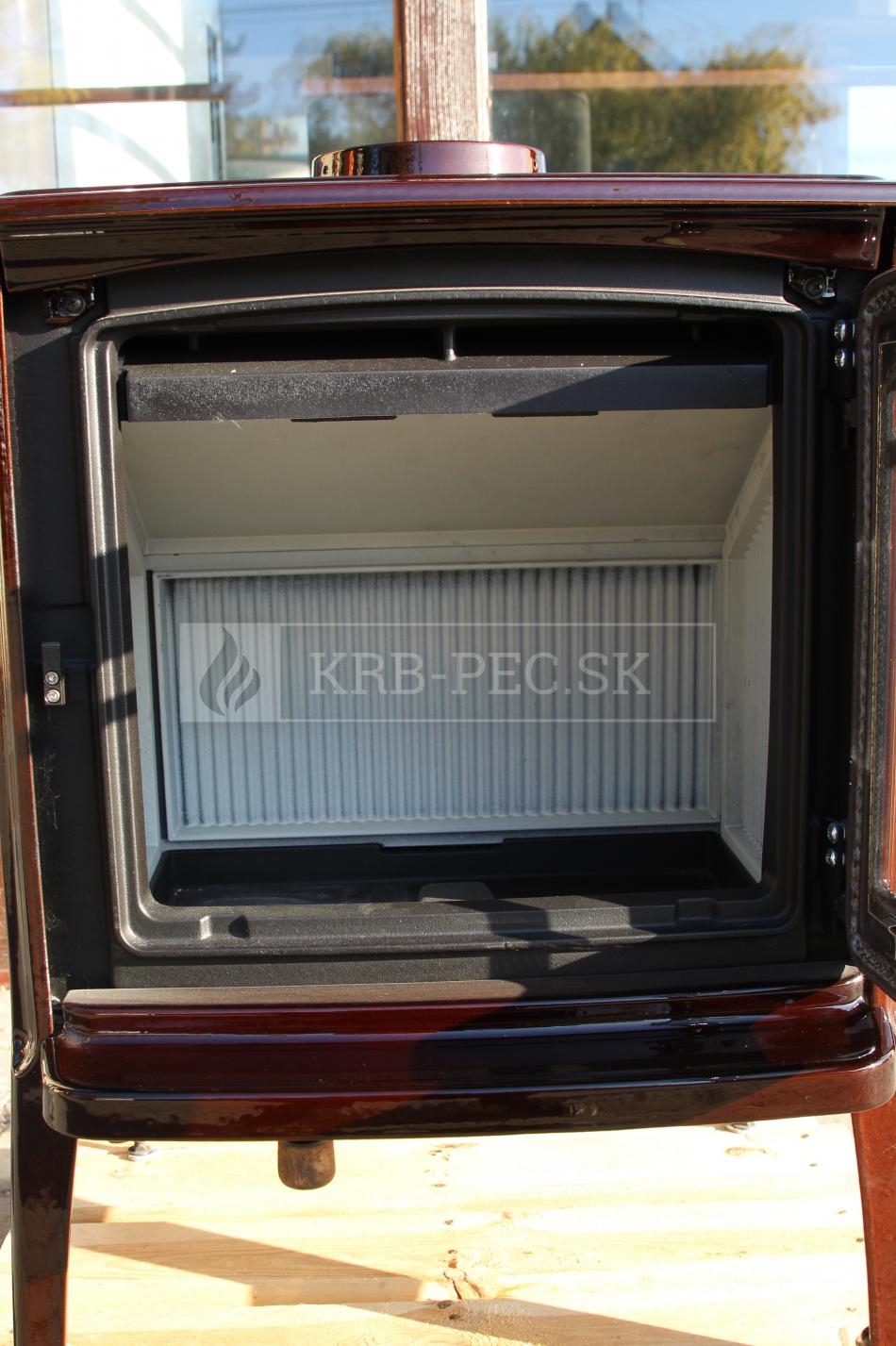 -Liatinové krbové kachle Hergóm Craftsbury v prevedení hnedého smaltu. Široká škála integrovaných technologických inovácií, ako systém AirWash, a jednoduché ovládanie primárneho a sekundárneho vzduchu.
