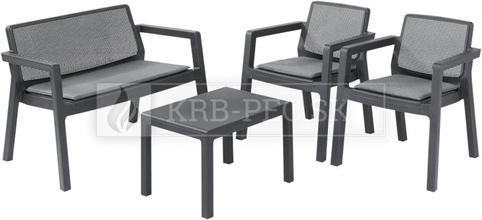 Keter Emily balkónový set nábytku grafitový (2 stoličky + stôl + sedačka) krb-pec