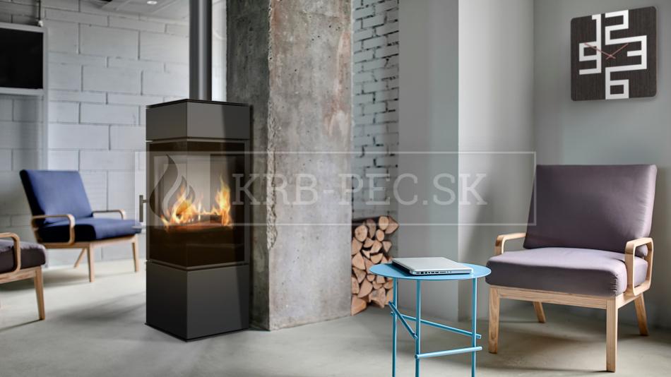 voľne stojace teplovzdušné oceľové krbové kachle s rohovým presklením