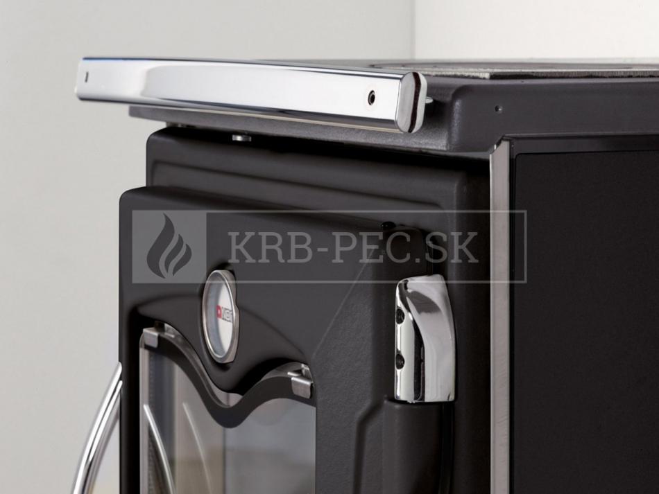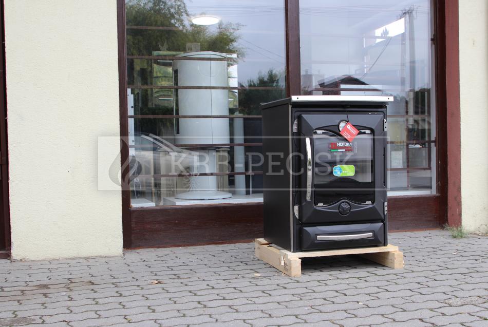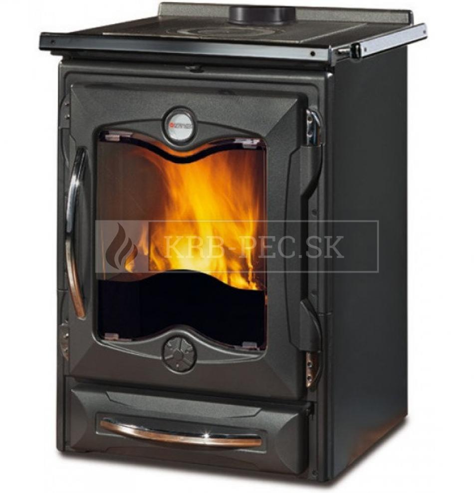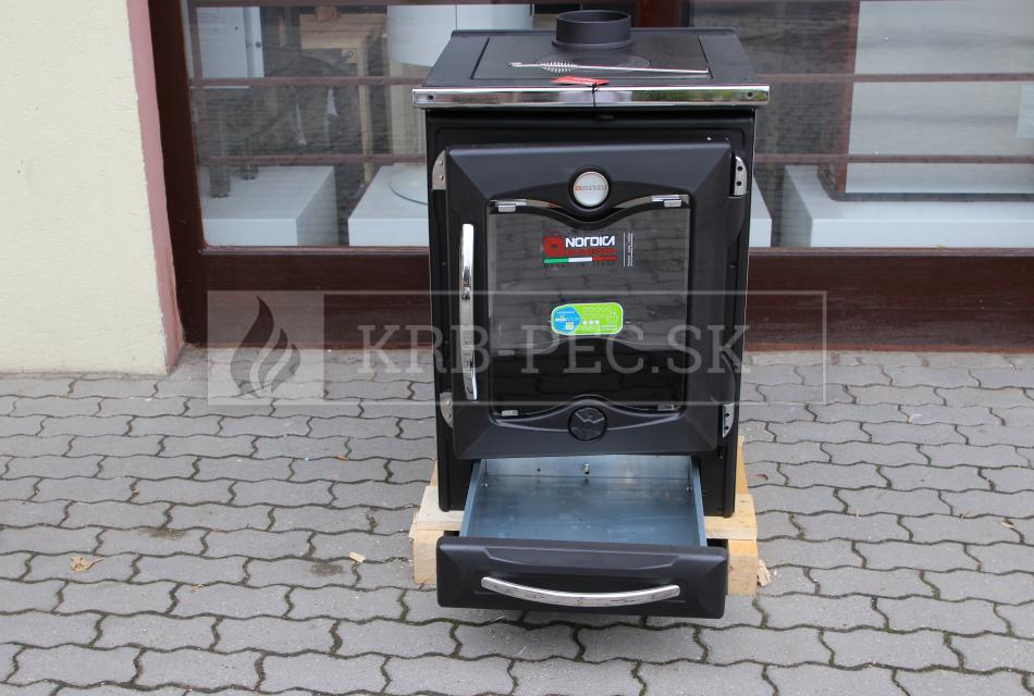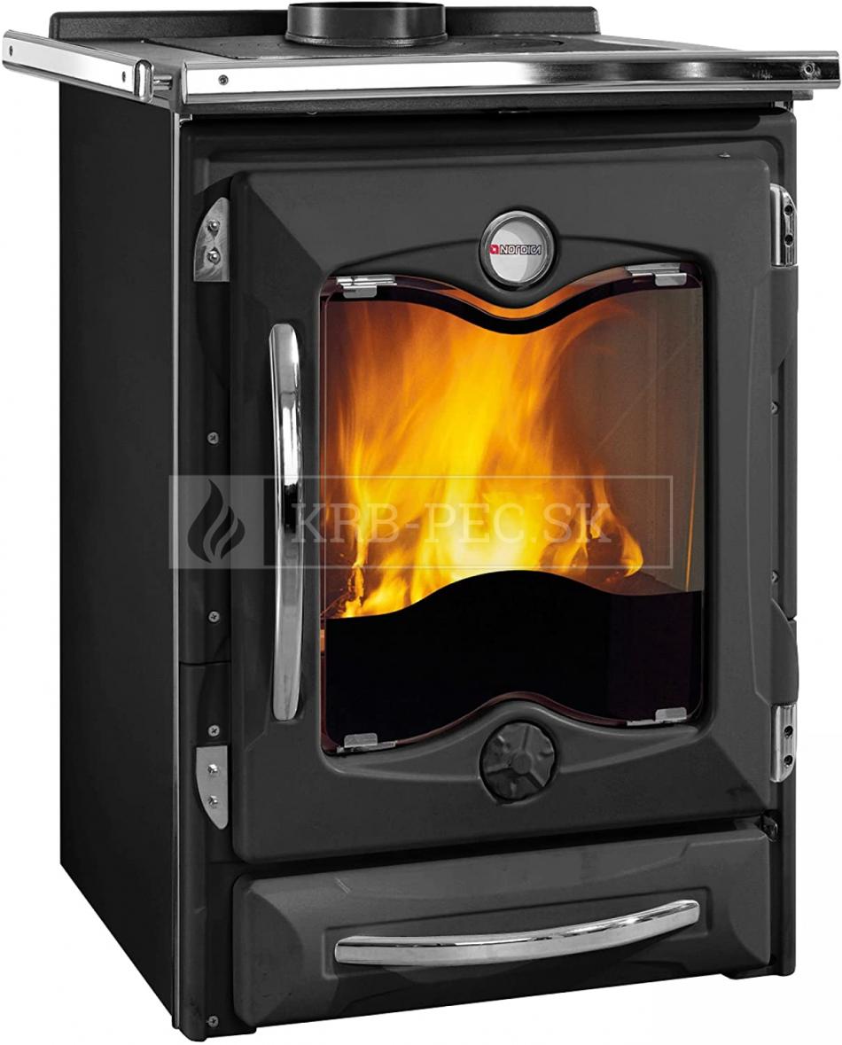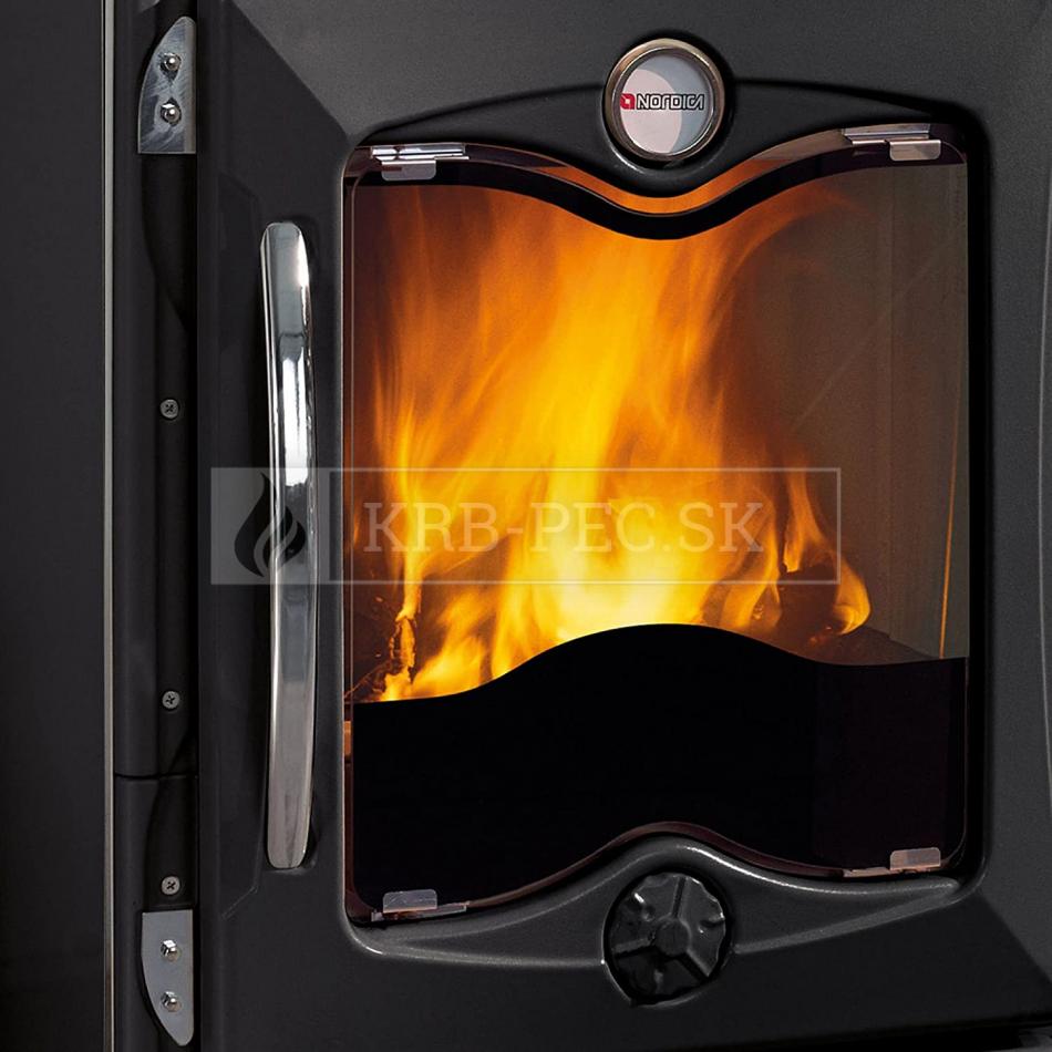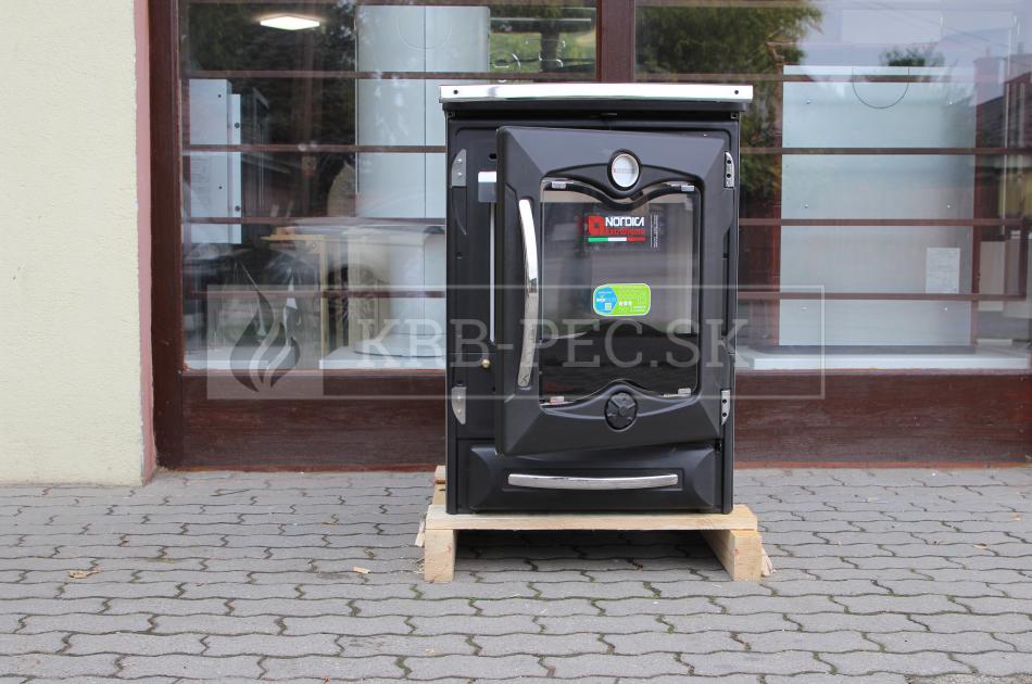 ![]() | La Nordica liatinový sporák s varnou platňou s chrómovaným rámikom okolo a ohniskom v kombinácii materiálu Nordiker a liatina. Tento výkonný sporák má dvojité presklenie a disponuje dvojitým ekologickým horením. |