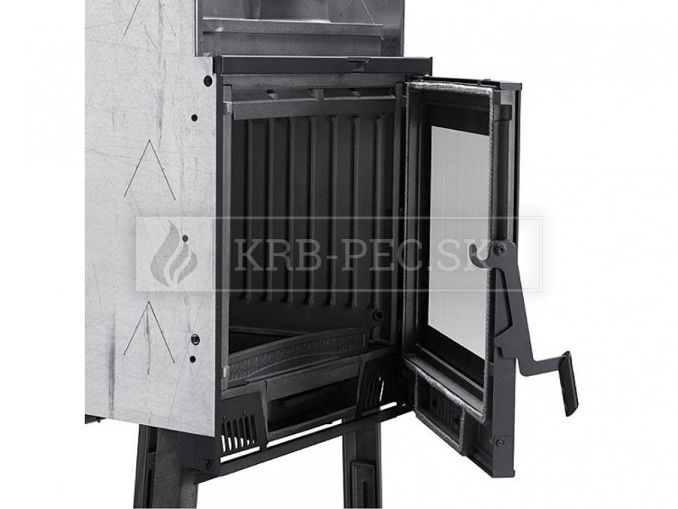 • Teplovzdušná krbová vložka Focolare 60 priama - špičková liatinová vložka s veľkým presklením. Nová konštrukcia umožňuje voľbu otvárania dvierok vpravo alebo vľavo. Kovové madlo je dostatočne veľké pre pohodlné otváranie a na vložke zapadá do rolničky. Tým je zaručené aj pri vysokých teplotách vždy dobré a ľahké otváranie.Vrchná časť vložky je úplne novej konštrukcie, v ktorej sú dva nerezové deflektory. Vnútorná stena tohoto liatinového dielu je tvorená mnohými ihlanmi, ktoré majú za úlohu vytvoriť velkú turbulenciu plynu. Rýchlosť plynu sa spomalí a dôjde k dokonalému zmiešaniu s predhriatym vzduchom. Účinnosť je 78%.. Odchádzajúci CO je 0,09% a táto hodnota je tak nízka, že pri prevádzke neni vidieť dym z komína. Aj zanášanie dymovodu a komína je minimálne.Dymový výstup je v hornej časti v priemere 160 mm. V strednej časti vložky je popolník pre ľahké odstránenie popola.Pre rýchle a jednoduché roztopenie je pod rošt privedený regulovateľný primárny vzduch.Sekundárny vzduch je tiež jemne regulovateľný a silne ohriaty, ale naviac je vstup osadený hrdlom pre pripojenie ohybnej hliníkovej trubky. Druhá strana sa zpravidla pripojuje na výstup prísavného vnokajšieho vzduchu. Tým je jednoducho vyriešený problém prisávania vzduchu na horenie z vonku.Tretí terciálny vzduch vstupuje do vložky automaticky do zadnej liatinovej dosky ohniska, kde silno ohreje a vystupuje malými otvormi pod prvý deflektor. Tým je nielen zabránené prehrievanie zadnej časti, ale prakticky je odstránené praskanie a deformácia pri prekúrení.Vložka stojí na troch liatinových nožičkách s výškovým nastavením. Teplo do priestoru sa prenáša sálaním. Pre prívod sálavého tepla na ohriaty vzduch sa na zvláštu objednávku dodáva teplovzušný plášť, ktorý je osadený styrmi výstupmi s hrdlami na pripojenie hliníkových flexibilných hadíc o priemere o150mm.Pri potrebe väčšieho množstva predávaného teplého vzduchu je k teplovzdušnému plášťu možno objednať axialny ventilátor / 800m3/min / s reguláciou otáčok v piatich stupňoch, teplotným čidlom /zapína pri 50st. celzia/ a diaľkovým ovládačom.Pre informáciu je pri prevádzke ventilátor velmi tichý.