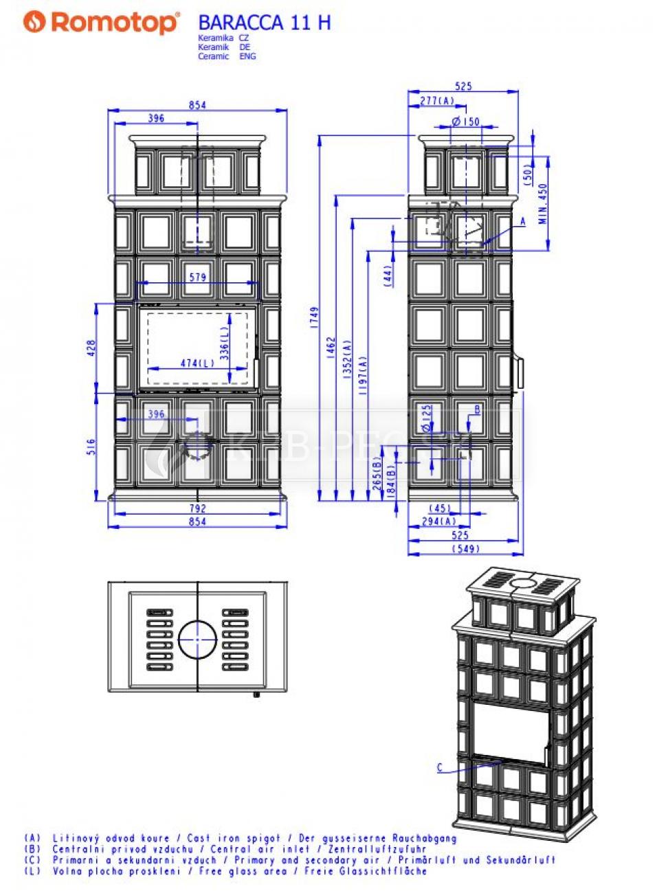 -Romotop Baracca 11 H celokeramický krb s kobkou a šamotovým ohniskom. Na predĺženie akumulácie tepla sa odporúča dokúpiť akumulačné jednotky. Veľkoformátové keramické obklady sú k dispozícii v širokej škále farieb. Ak hľadáte kachle s celokeramickým povrchom, môžu byť jednou z najlepších možností. Určite prekoná vaše očakávania. Regulovateľný výkon: 3,0 - 7,7 kW.